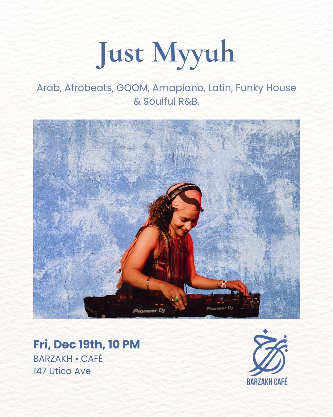 Barzakh is booking on Friday! after The Brokklyn Nomad, you can continue the partyy with Myyur. Myyuh is the co-founder and co-curator of The Haza Party, a dance party that spotlights Arab, African, and Southwest Asian music.