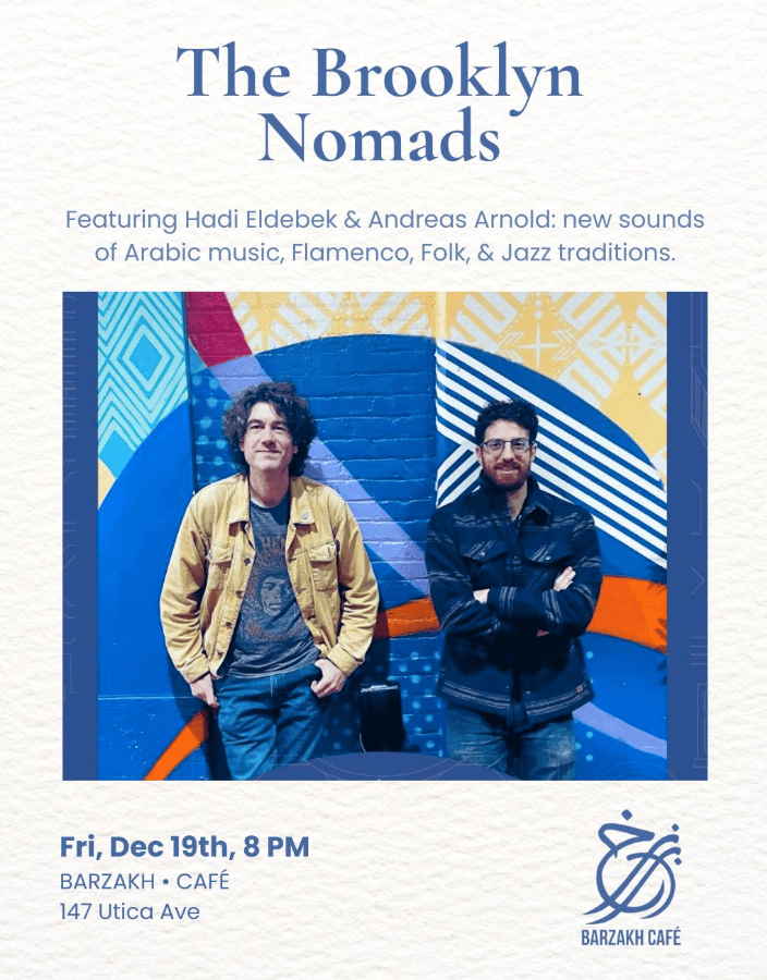Hadi and Andreas exploring together sounds inspired by Arabic music, Flamenco, Folk, and Jazz. You’ll hear some of their own original compositions, alongside our interpretations of songs from musical giants, like Sayed Darwish, Ennio Morricone, Sheikh Imam, and more.