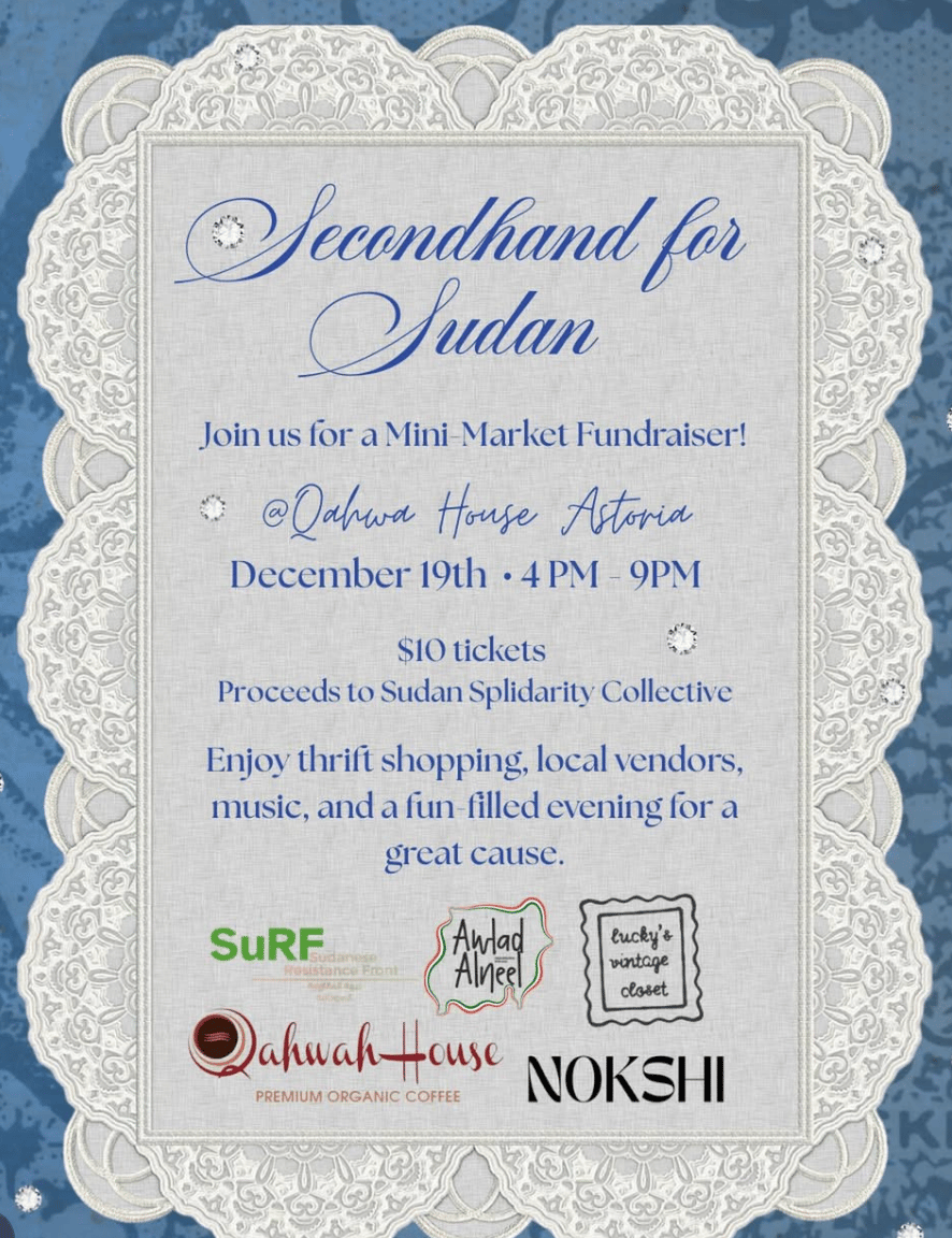 Thrift lovers & community supporters, this one’s for you! an evening of shopping, oud performance, and solidarity. We couldn’t get much info about the vendors but it’s a noble cause that needs our support. All ticket proceeds + a portion of every vendors sales will go straight to the Sudan Solidarity Collective.