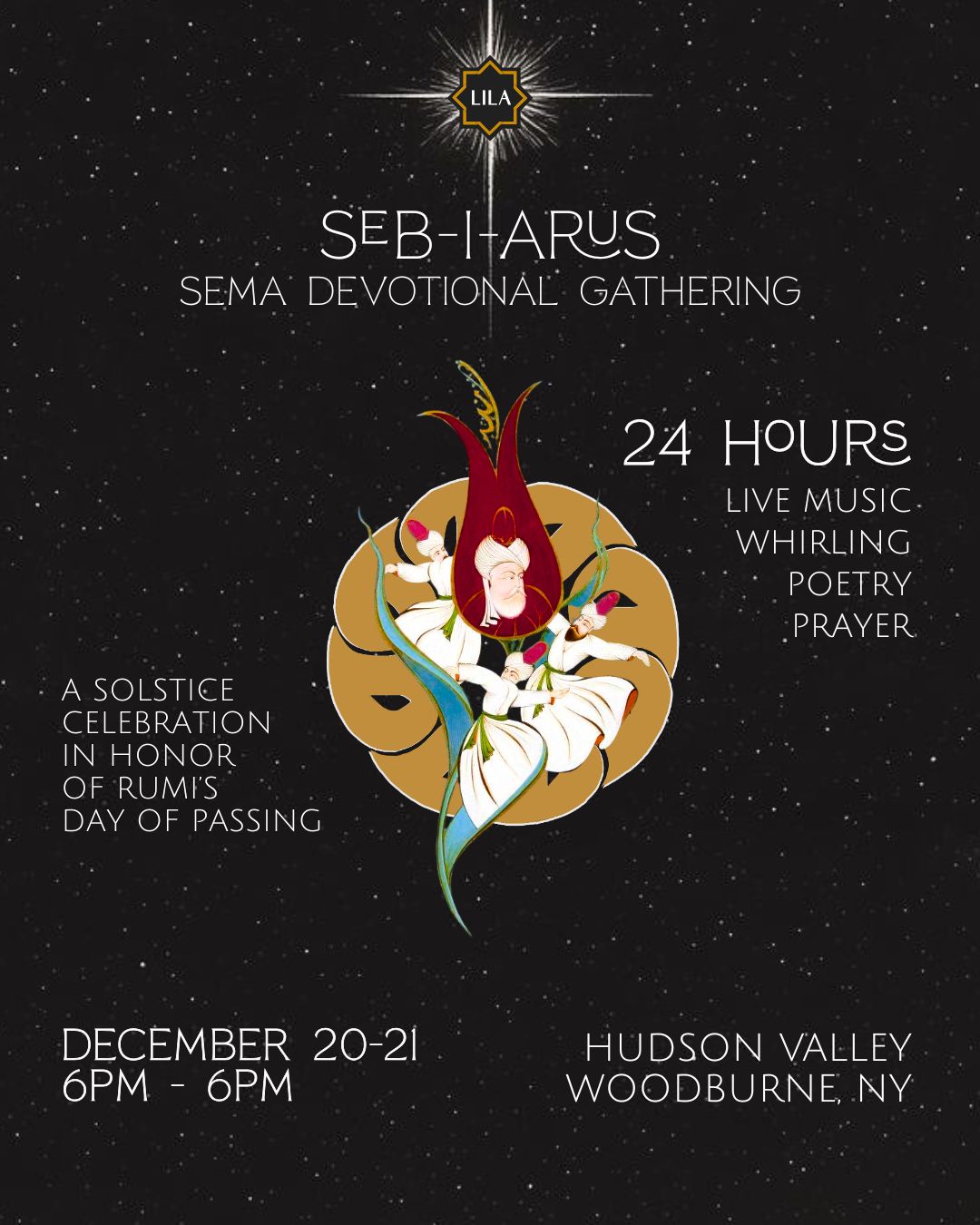 This one is special! A 24-hour immersive gathering honoring the anniversary of Rumi’s passing, with continuous live devotional music from many traditions, including SWANA musical lineages (Turkey, Morocco, Iran and the line up is impressive) as well as continuous communal whirling. The intention is to create a connected, heart-centered space open to all faiths, supported and guided by devotional music. The team behind the event is also all of SWANA background (Egypt, Iraq, Syria). It’s truly wonderful to see this type of spiritual events from the community.