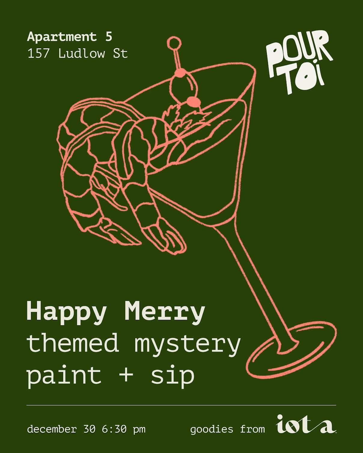 Pour Toi is a paint + sip experience for the creatively curious, founded by designers and art school besties Sonya & Alina. It all starts with a theme and a mystery art kit full of supplies, a prompt, and a curated moodboard. Their current theme is Happy Merry.