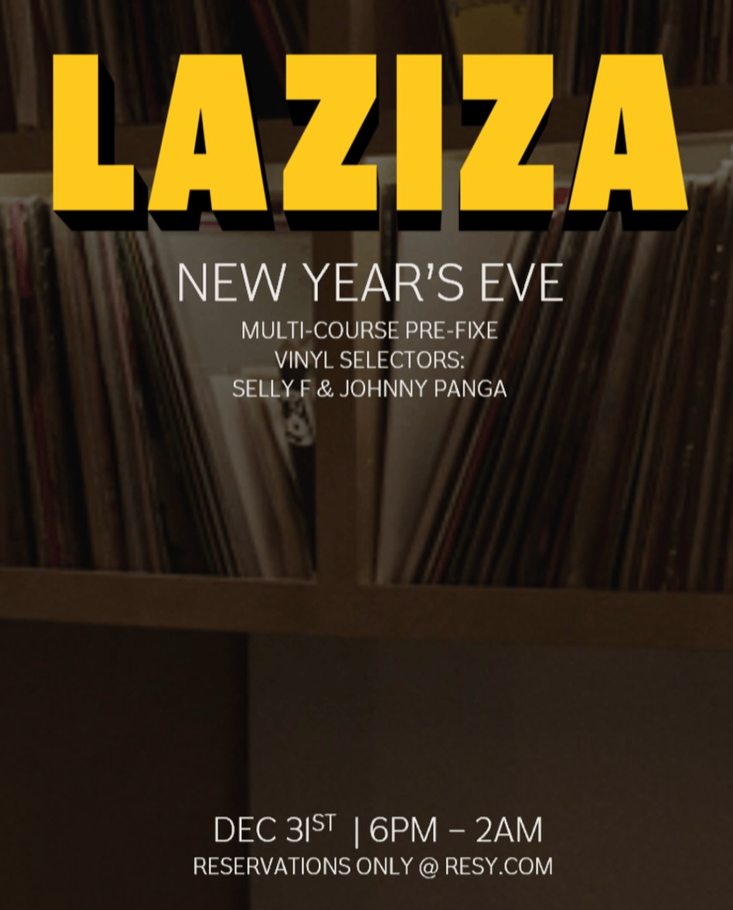 Expect a disco ball, a curated selection of Laziza’s best dishes, cocktails + wines, room to dance. The vinyl selections for the night will be brought to you by from Selly F and Johnny Panga.