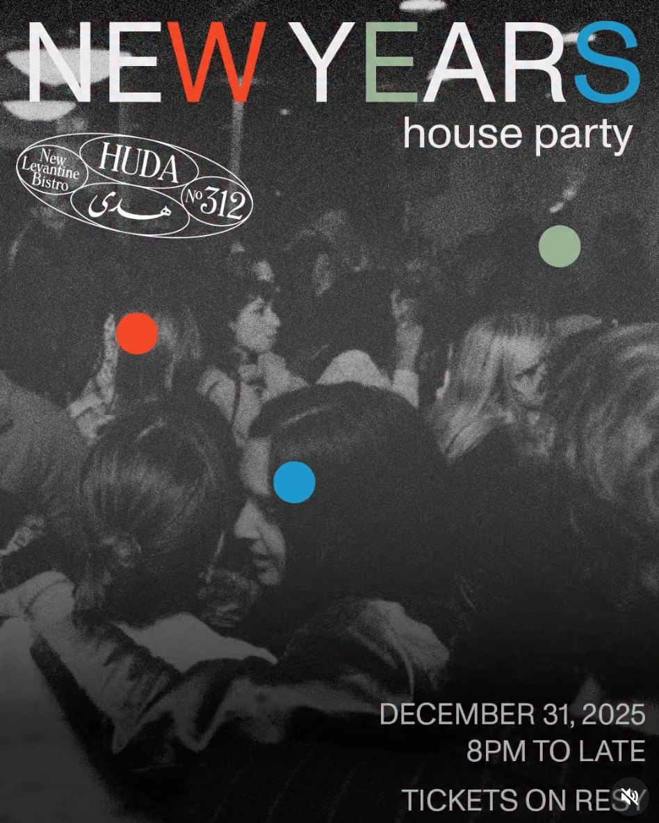 Huda is throwing a house party! Open bar, Levantine bites, habibi funk, dance floor, disco ball, and Arab hospitality!