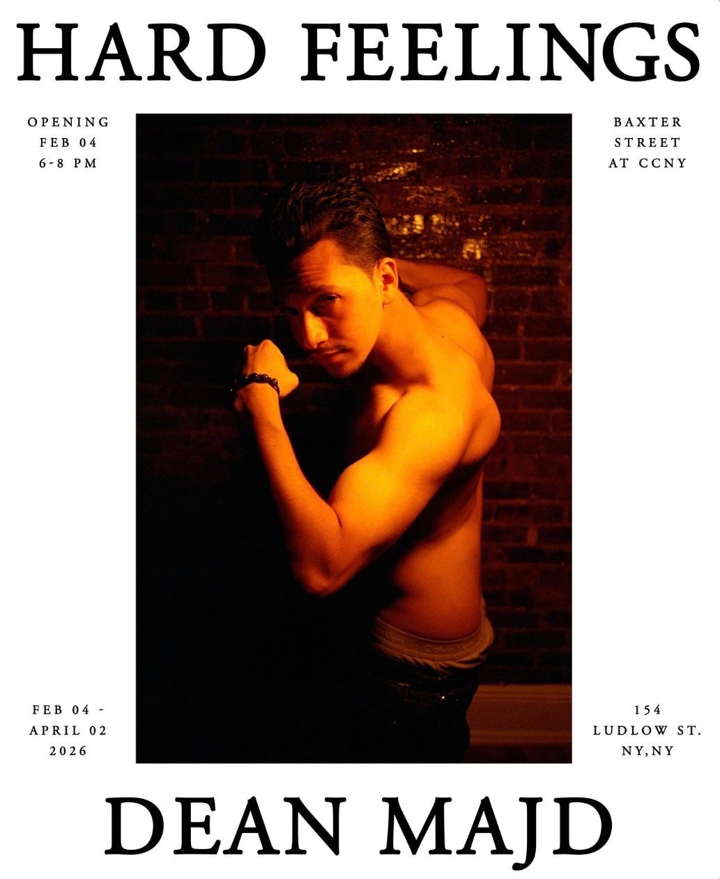 Catch the final weeks of Hard Feelings, the debut solo exhibition by Dean Majd. Through photography, the Queens-raised Palestinian artist offers a sharp, intimate reframe of masculinity. Majd is very much having a moment right now, and it shows. This one’s worth seeing before it closes and such a great first date idea :)